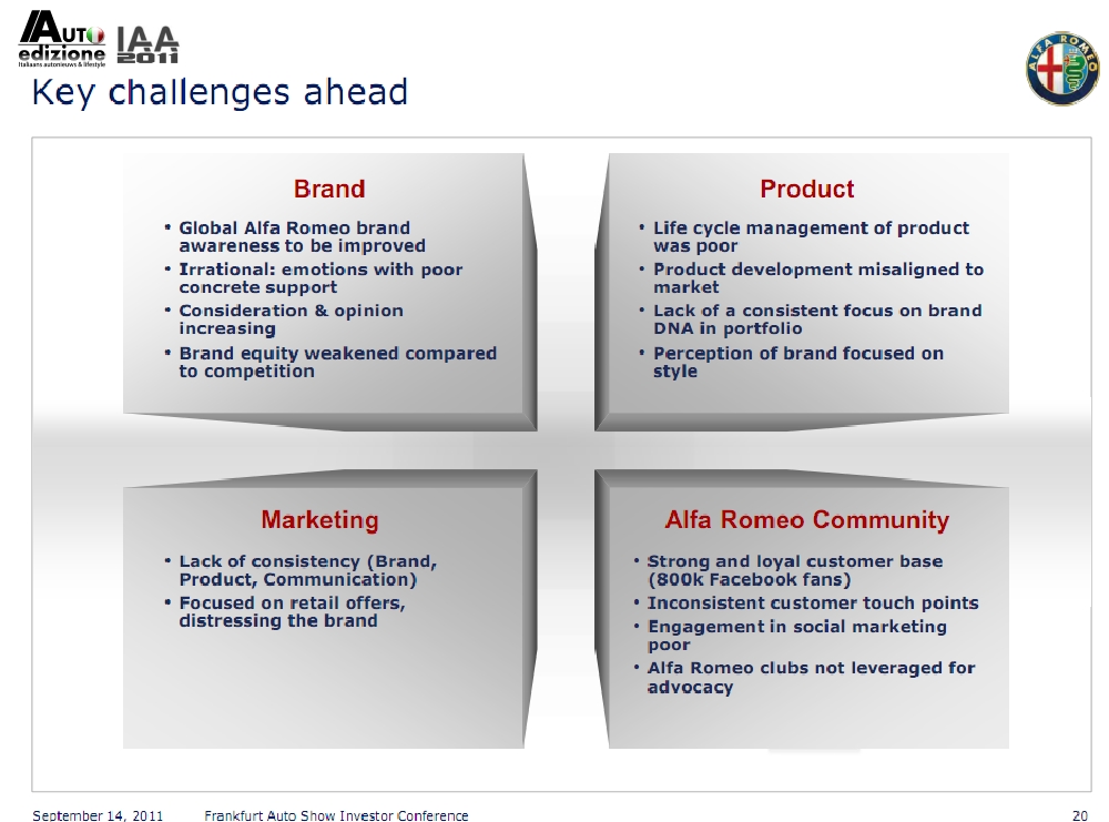 Kendine giydirdikçe giydirmiş Alfa Romeo :) Firmanın eksiklerinin farkında olması güzel. Şikayet edilen ne varsa hepsini Alfa Romeo da biliyor ve bence çok güzel bir plan hazırlamışlar. Eğer bu yolda ilerleyebilirlerse 2014'te gerçekten güzel bir yere gelirler.